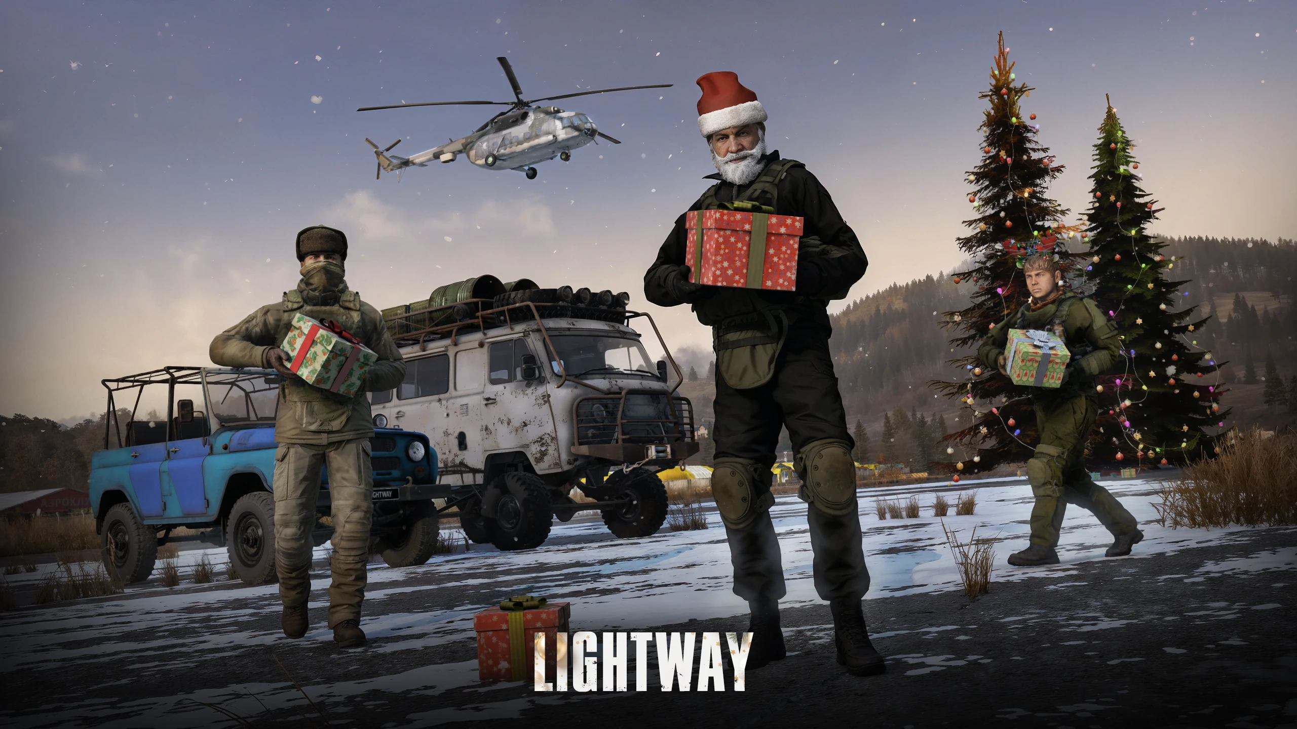 - летающий санта, который скидывает подарки по всей карте Чернорусси с рандомный лутам, но будь осторожен может быть сброшен опасный груз;